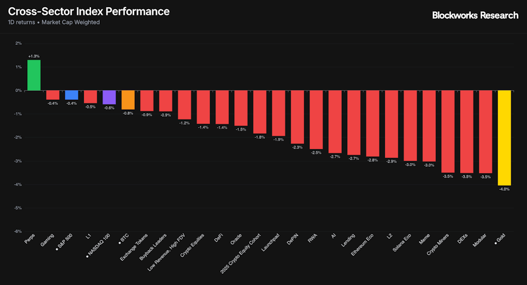 Back on the crypto front, Perps (+1.3%) was the only index to finish the day in the green, with HYPE leading gains ahead of Lighter’s TGE today. Competition for perps market share has heated up in recent months. Lighter has shown that verifiable execution and zero retail fees can drive market-leading volume, leading perps trading with just over $200 billion in volume over the past 30 days, followed by Aster ($172 billion) and Hyperliquid ($161 billion). That said, Hyperliquid remains the only one of the three operating without active incentives and is the clear revenue leader, generating ~$47 million over the same period.