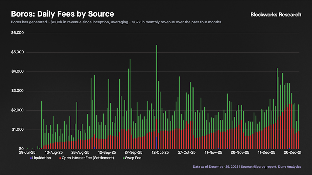 Today, Boros represents less than 5% of Pendle v2 revenue, but it is well-positioned to be the most important growth vector for the protocol and may eventually rival or exceed v2 over time.