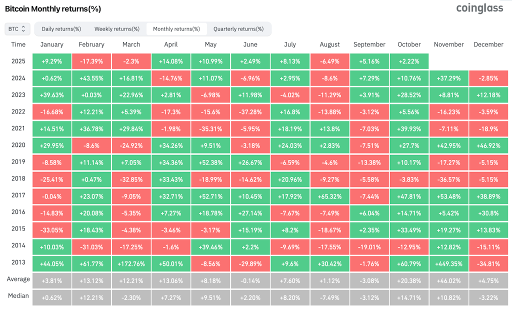 While bitcoin’s month-over-month October strength is usually supported by September weakness, BTC’s 5% rise last month changes the set-up a bit.
