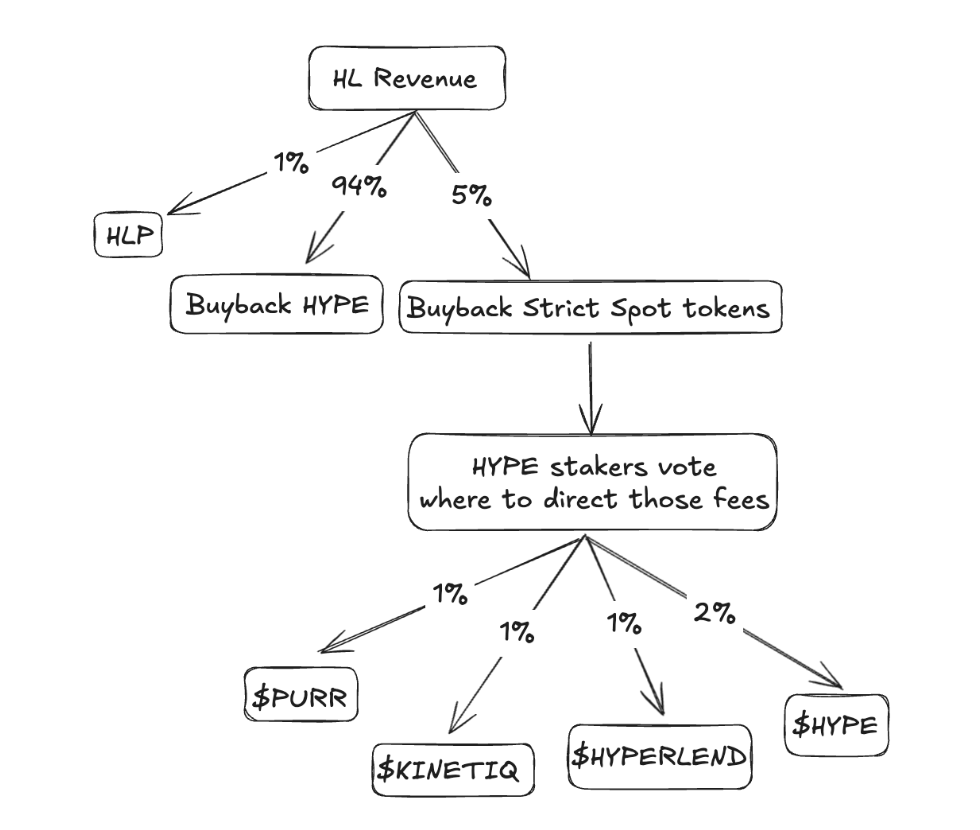 - “Bootstrap ecosystem projects: Provide buy-pressure to existing strict spot Hypercore tokens, giving teams already staking HYPE more incentive to deploy their tokens in Hypercore. At the same time, new projects launching on Hypercore are encouraged to stake HYPE (or incentivize stakers) in order to compete for votes and buybacks.”