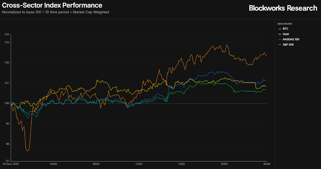 After several days in the red, markets found relief yesterday as all major benchmarks posted gains. The rebound was led by BTC and the tech-heavy Nasdaq, which rose 2.36% and 1.15%, respectively.