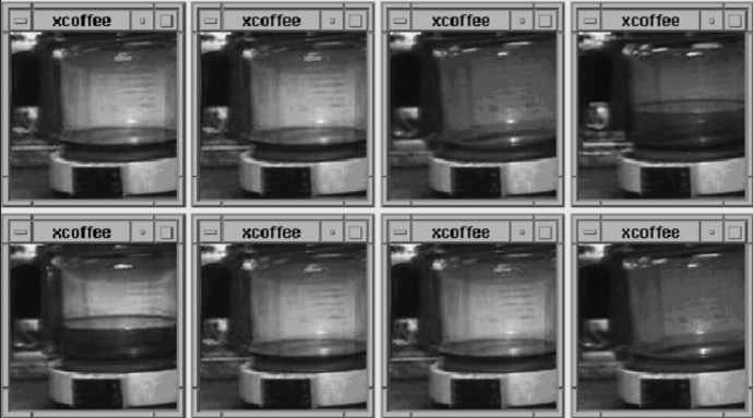 A spare video camera, mounted in the kitchen and connected to the laboratory’s network via Ethernet, was programmed to send low-resolution photos of the coffee pot to the scientists’ desktops every 20 seconds or so.