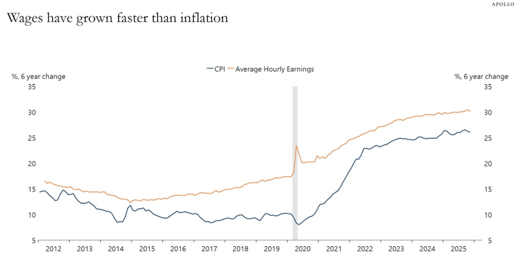 For all the hand-wringing over the “affordability crisis,” wages have grown faster than prices for the last decade, at least. In other words, things have gotten more affordable, not less. (Yes, this accounts for housing.)