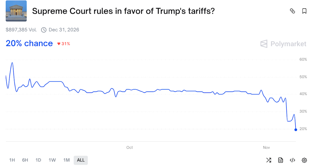 Polymarket betting suggests there’s an 80% chance the president’s IEEPA tariffs will be deemed unconstitutional. If the tariffs are revoked, inflation would presumably fall, giving the Fed room to cut interest rates. Tariff payers might even get the $90 billion they paid refunded. What happens if we get rate cuts, bigger deficits and an AI capex boom? The bubble might only just be getting started.