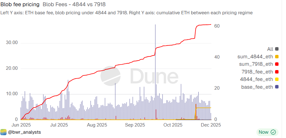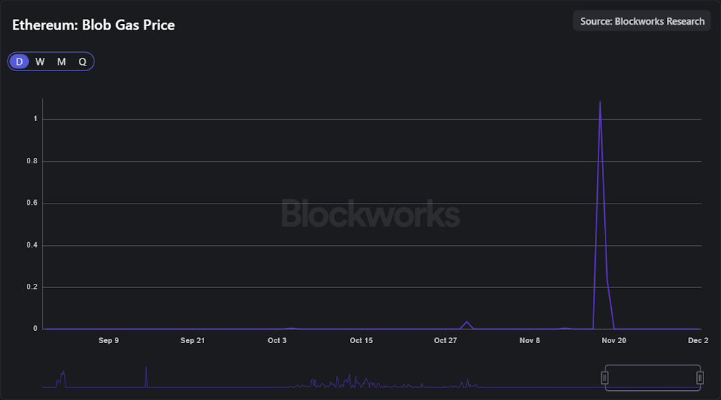 The larger point still stands: With supply exceeding demand, the blob gas price has been largely immaterial (apart from a few blips here and there when the blob price reached a measly 1 gwei).
