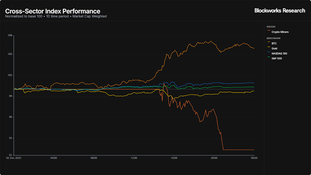 Markets leaned firmly risk-on, with crypto broadly outperforming traditional assets. BTC (+5.8%) sat mid-pack, while equities were muted. The S&P 500 (+0.3%) and Nasdaq 100 (+0.9%) barely budged. Gold (-0.3%) slipped, and crypto miners were the clear outlier to the downside (-8.7%), suggesting profit-taking and sensitivity to BTC’s consolidation.