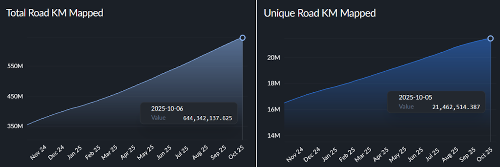 According to Hivemapper official data, the network has mapped 644 million km of roads in total, including 21 million km in unique roadway.
