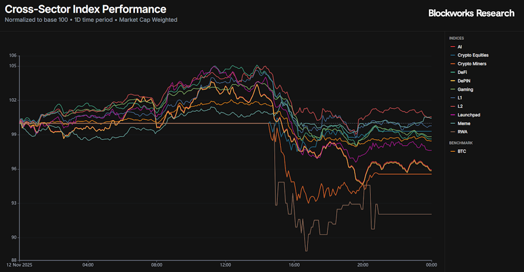 Laggard categories included Crypto Miners and RWAs, which dropped -4.44% and -7.94%, respectively. The pullback in AI-linked equities spilled into mining stocks, many of which have pivoted toward AI data centers. After a YTD rally of 105.5%, some profit taking in the sector is also to be expected.