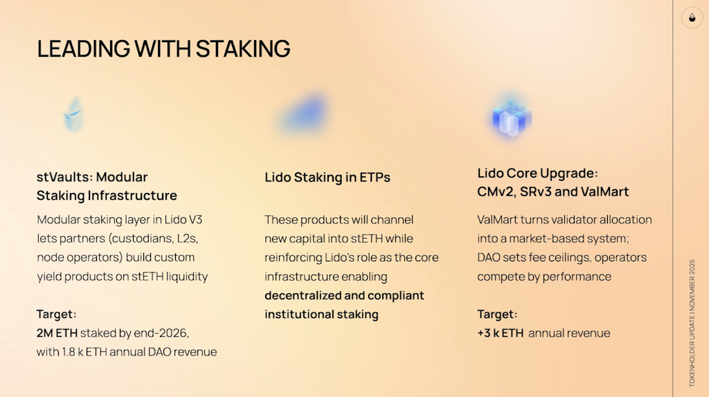 However, Lido also outlined where the protocol is heading over the next 18 months, from a single-product staking business to a multi-product liquidity platform anchored by stETH.
