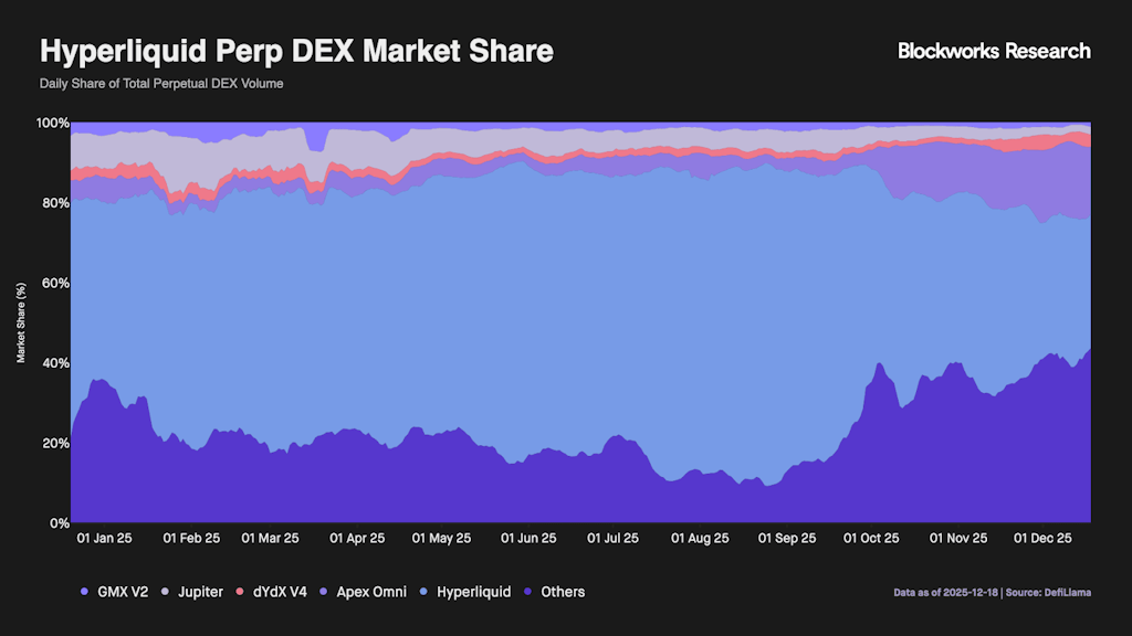 Hyperliquid’s weekly volume trails newer rivals as a Lighter airdrop looms