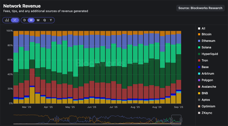 While we are constructive on inflows into these new SOL ETFs upon approval, the trend in several of Solana’s network fundamentals remains unfavorable. DEX volumes, REV and application revenue remain subdued. Additionally, Solana has been steadily losing market share in Network Revenue to both Hyperliquid and BNB. New inflows from these ETFs could continue to support SOL’s price action, but the onchain data says the activity is increasingly happening elsewhere.