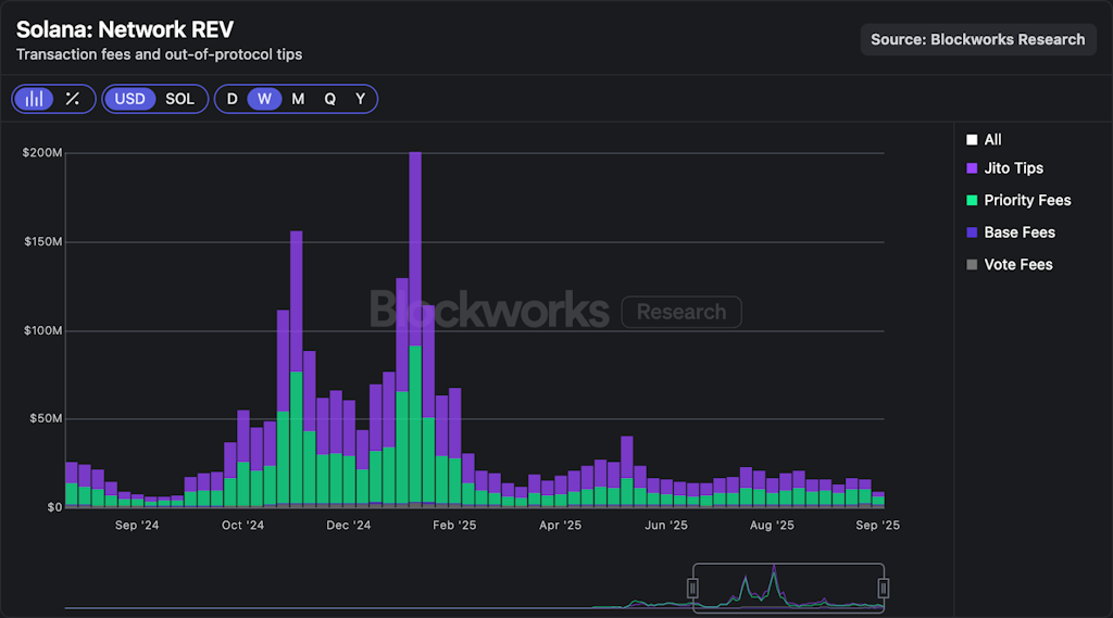 This shift in market structure has downstream implications for Solana’s REV. Last week, Solana generated $9.1 million in REV, the lowest weekly print since September last year, before the US election. While not all of these trends can be attributed solely to prop AMMs, they have certainly played a significant role. It will be interesting to monitor if prop AMMs continue to evolve in the coming months and the second-order effects in Solana’s ecosystem (aggregators, volume composition, REV, etc.).