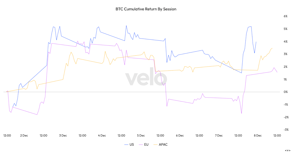 BTC bounced off $85,000 lows, and is back up to $92,000. Over the past three weeks, BTC has increased 5%, with significant volatility throughout. In particular, BTC has been underperforming through the EU session, while outperforming in the US and APAC sessions.