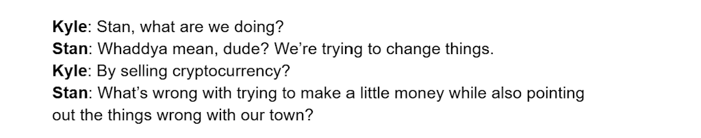 The writers of South Park sum up the state of crypto in just a few lines of dialogue: