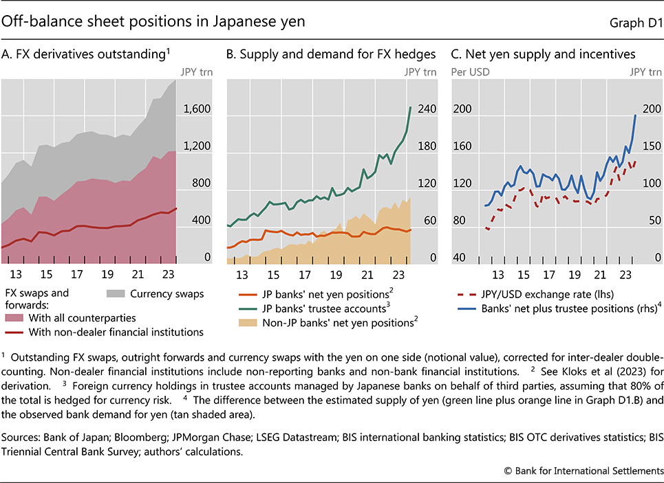 - Notional FX swaps and forwards with JPY on one side reached $14.2 trillion dollars (about 1,994 trillion yen). These positions sit off-balance-sheet and do not appear in conventional debt metrics.