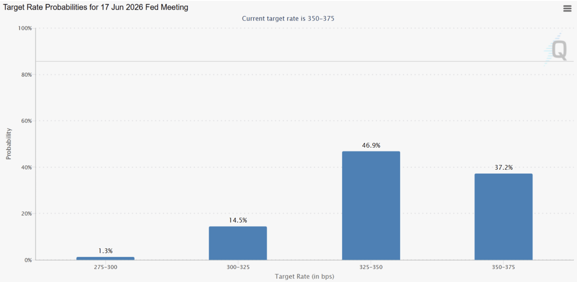 Macro-wise, the move fits neatly into a risk-off impulse driven by the Fed’s latest messaging, which kept rates restrictive and the tone cautious on inflation progress. Markets are increasingly sensitive to any signal that policy may stay "higher for longer," and crypto, still behaving like a high-beta expression of liquidity conditions, took the hit alongside other duration-sensitive assets. The market isn’t expecting another cut until June 2026, and even then, there may be considerable uncertainty.